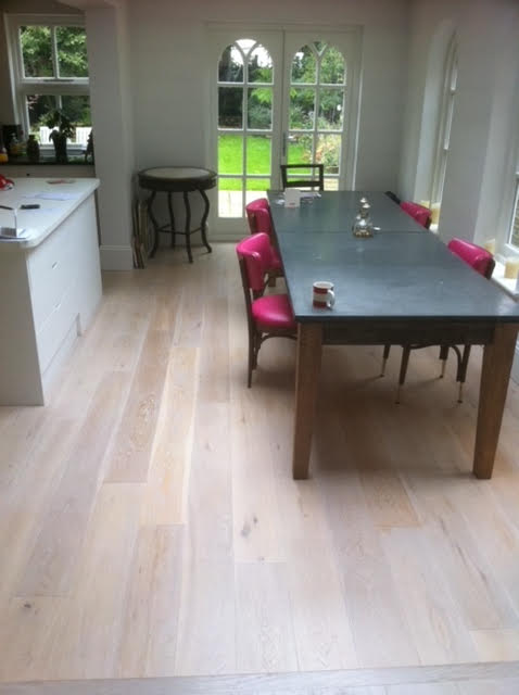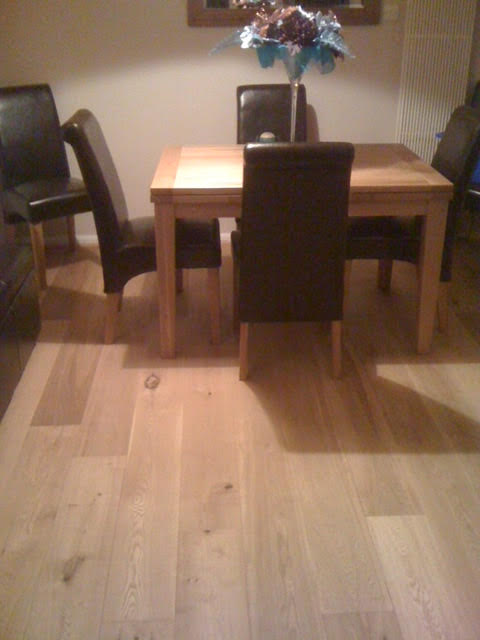 Engineered Flooring is constructed of several layers of wood. It will usually consit of three different layers, a top hardwood layer, a core middle section and also a balancing bottom layer. All these are glued together under extreme pressure at 90 degree angles to each other,